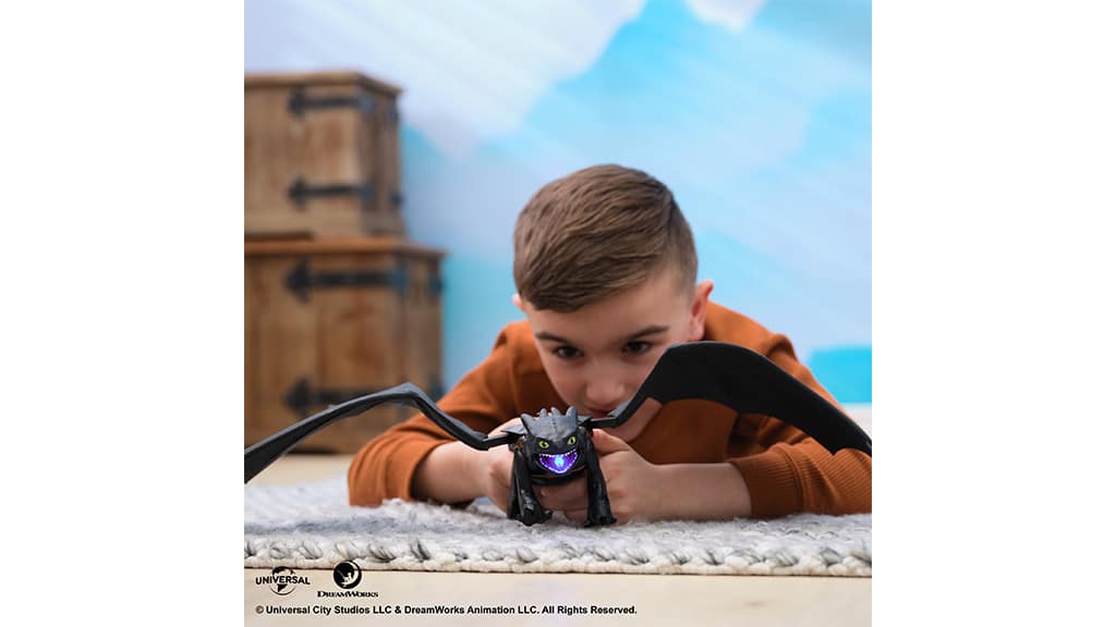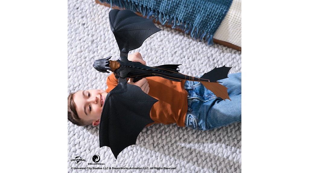 Zboară cu această figurină de Dragon fără dinți, care are efecte de lumină și sunet, cap mobil și o anvergură impresionantă a aripilor de 66 de centimetri. Această jucărie detaliată este alegerea perfectă pentru orice fan al seriei Cum să-ți dresezi dragonul, deoarece aduce la viață dragonul preferat și oferă copiilor aventuri palpitante.Jucătorii pot trăi o adevărată viață de viking atunci când intră în pielea lui Sughiț, Astrid, Solzi sau Cap-de-Piatră. Ediția Cum să ne dresăm dragonul conține sarcini cunoscute din film, cum ar fi să plătești cu pește pentru antrenamentul dragonilor, să dresezi dragoni, precum și să participi la concursuri pentru a-ți testa abilitățile de viking. Pentru a câștiga, jucătorul trebuie să fie primul care dresează câte un dragon din fiecare specie, în timp ce îl așteaptă aventuri și provocări palpitante în lumea vikingilor. Pe parcursul jocului se dezvoltă abilitățile strategice, îndemânarea și munca în echipă, oferind astfel o experiență de neuitat pentru toate vârstele.