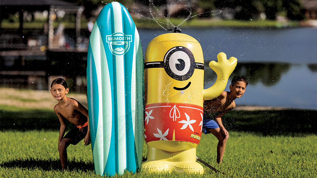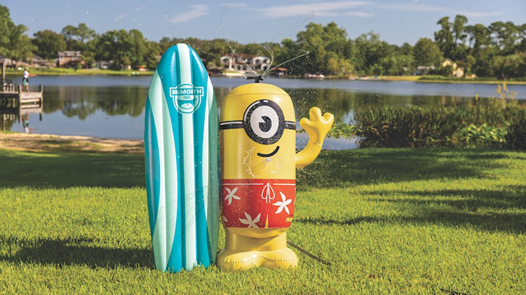 Conectează acest stropitor inspirat de Minion la un furtun de grădină standard pentru a obține un jet de apă rotativ de 360 de grade și două alte puncte de pulverizare. Minionul de 4,5 picioare înălțime este ușor și ușor de transportat.
