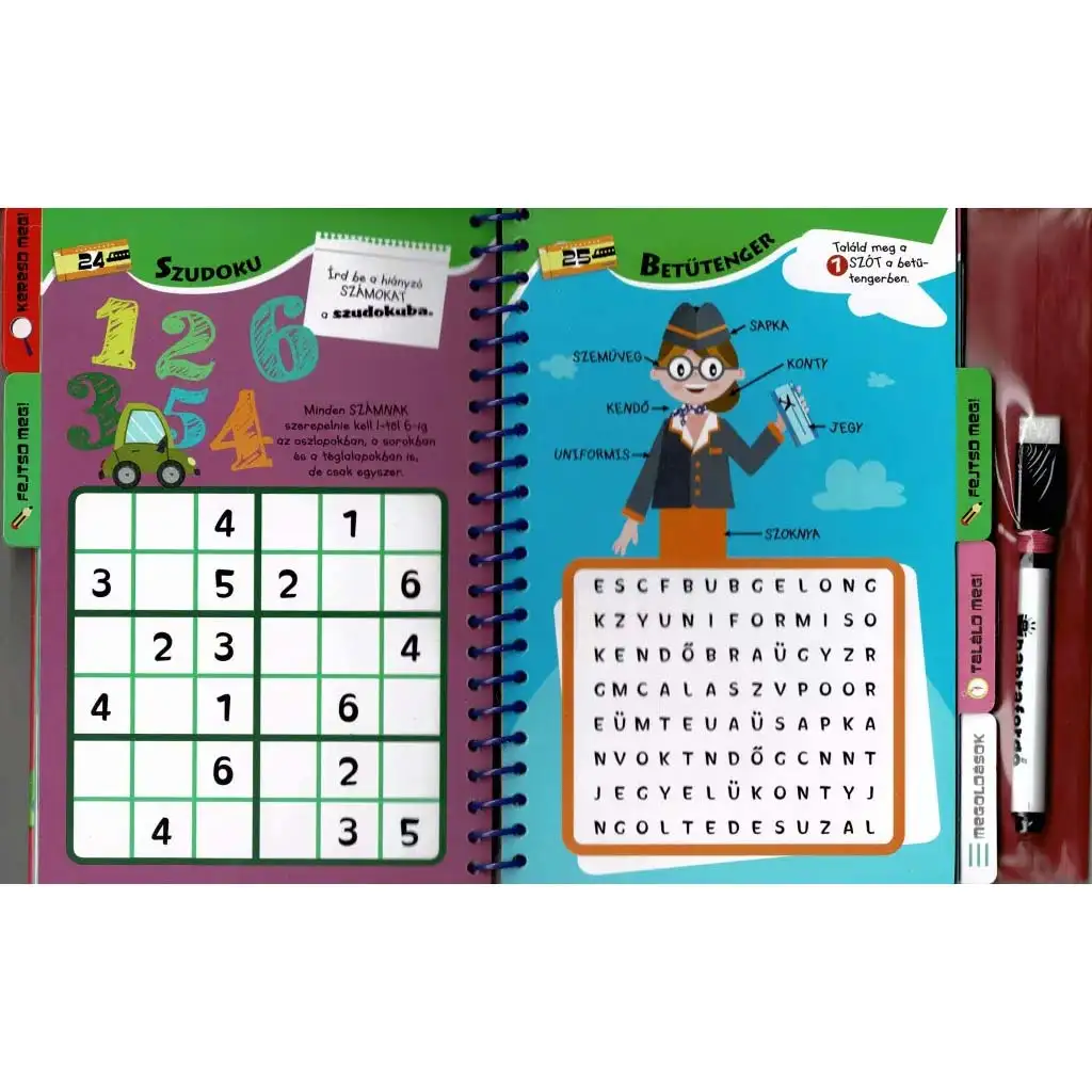 Designul cu spirală și markerul lavabil permit rezolvarea repetată a exercițiilor, făcând această carte un companion de lungă durată pentru orice călătorie.