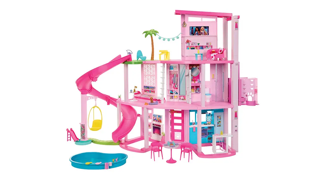 Sărbătorește cea de-a 65-a aniversare a Barbie cu această păpușă comemorativă! Această păpușă este disponibilă atât în versiune blondă, cât și brunetă, și poartă o rochie inspirată din originalul costum de baie cu dungi negre și albe al Barbie!Această casă de păpuși de lux dispune de un tobogan spiral și un plan deschis spațios, cu trei etaje și 10 camere de locuit. Include peste 75 de accesorii și spații personalizabile, plus detalii prietenoase pentru animale, inclusiv un tobogan pentru cățeluși și o piscină pentru animale.