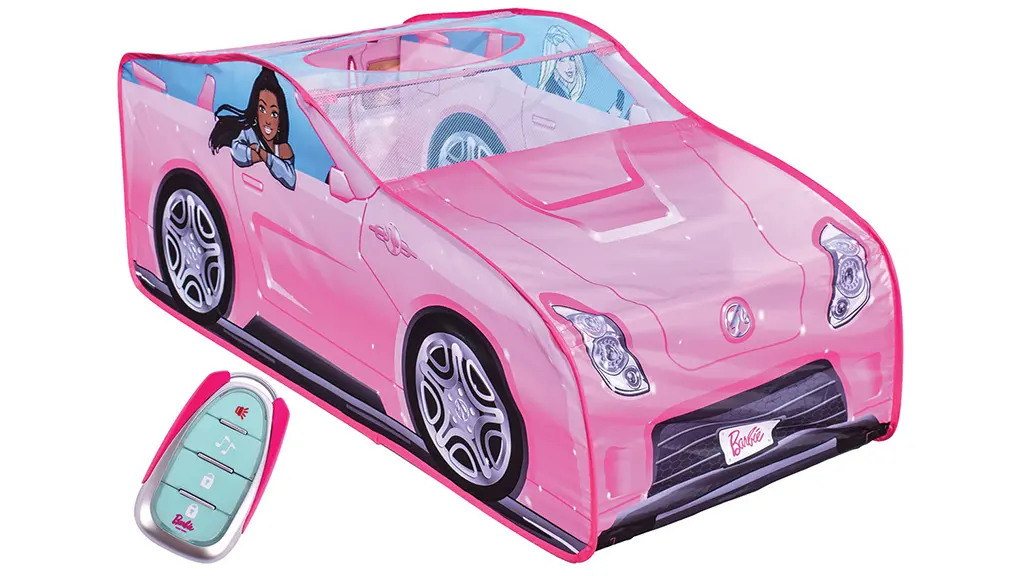 Această serie variată și inclusivă de păpuși Barbie reflectă lumea văzută de copiii de astăzi. Păpușile Barbie și Ken reprezintă diferite culori ale pielii, tipuri de păr, forme ale corpului și stiluri de modă.Evoluează în jocul activ și imaginar cu acest cort pop-up ajustabil de 4 picioare lungime, care include autocolante inspirate de Barbie. Vine cu un breloc cu efecte sonore și fraze Barbie.