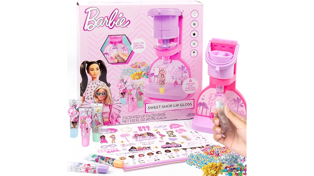 Prepară 12 gloss-uri de buze cu aromă de căpșuni cu setul Barbie Sweet Shop Lip Gloss! Instrumentul inovator de creare a gloss-urilor de buze facilitează prepararea gloss-urilor — o stație de încărcare pe care copiii o pot folosi din nou și din nou!