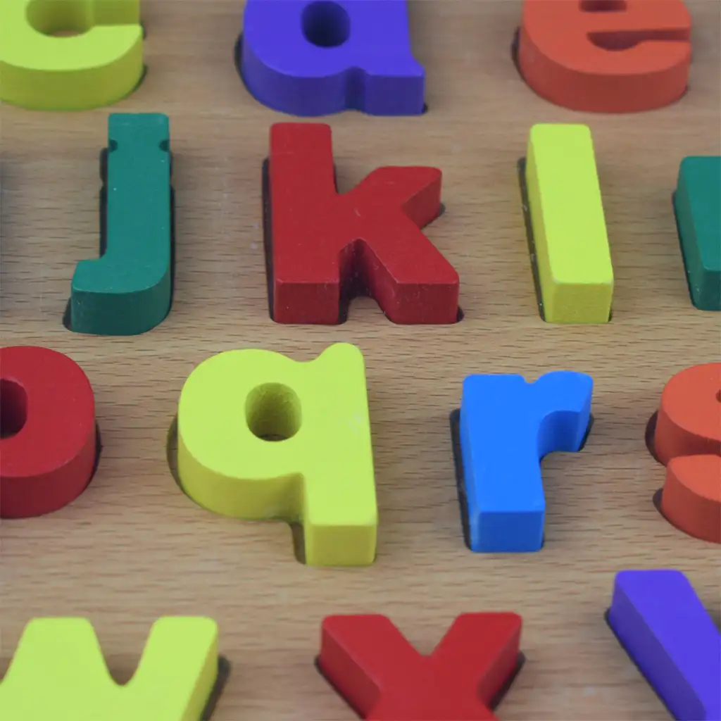 ABC puzzle din lemn colorat cu litere mici, 30x22cm