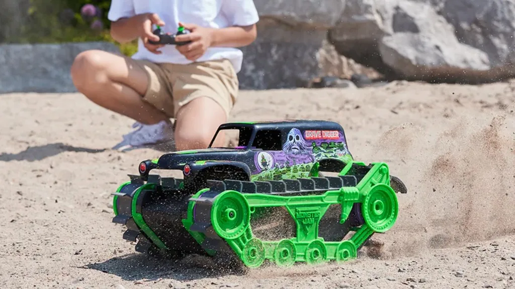 Anul acesta, compania prezintă Monster Jam Grave Digger Trax, care dispune de o caroserie unică și un șasiu rezistent, permițând copiilor să execute trucuri super cool Monster Jam, la fel ca la evenimente. Copiii pot învăța totul, de la trucuri pe roata din față sau din spate până la donuts și mai mult.Datorită șenilelor, acest vehicul este cu adevărat o mașinărie capabilă să se descurce pe orice teren, permițându-i să treacă prin zăpadă, noroi, pe stânci și multe alte terenuri - chiar poate călători și pluti pe apă. Deși acest camion ascunde multă putere, este relativ ușor de controlat cu un telecomandă ușor de manevrat cu două joystick-uri, care este accesibilă pentru fanii de la 4 ani și mai mari. În plus, copiii pot controla vehiculul de la distanțe mari cu telecomanda de 2.4 GHz, chiar și până la 150 de picioare.