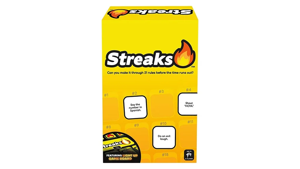 Având în vedere că jocul dispune de 130 de cărți de reguli, nu vei juca niciodată de două ori același joc, ceea ce îl face o alegere excelentă pentru întâlnirile de grup din dulap. Adăugarea Streaks la serile de jocuri de societate va aprinde cu siguranță distracția!