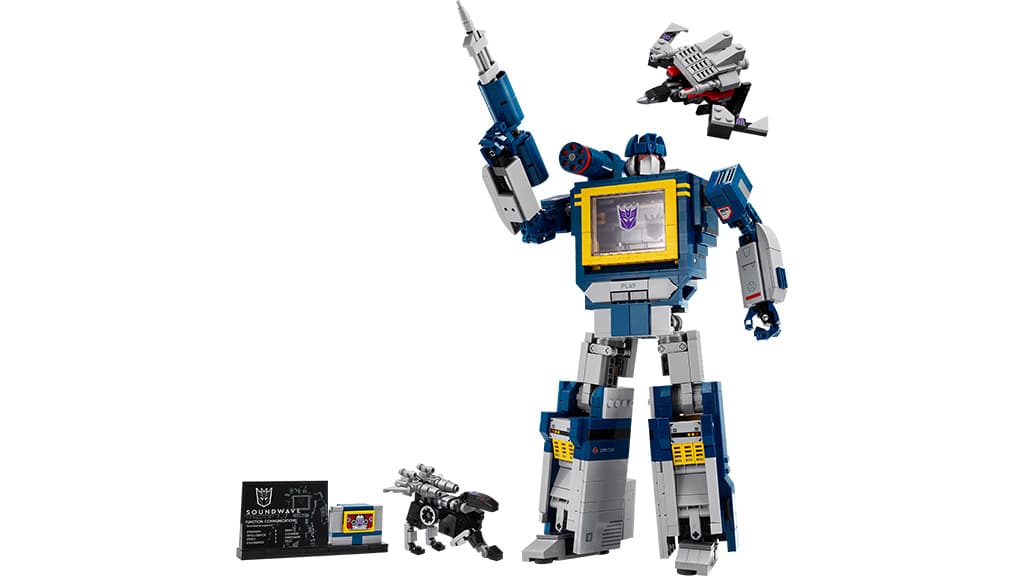 Familiile își pot expune propria creație Decepticon împreună cu o placă de prezentare atașată, pe care sunt vizibile statisticile puterii lui Soundwave. Soundwave se alătură deja seriei existente LEGO Icons Transformers, care în prezent include și modelele Optimus Prime și Bumblebee. Această colecție specială oferă posibilitatea fanilor să își construiască și să își prezinte acasă personajele preferate, în timp ce descoperă abilitățile și poveștile personajelor iconice din universul Transformers. Datorită detaliilor elaborate și elementelor de calitate, aceste modele nu sunt doar excelente pentru joacă, ci și pentru decor, oferind astfel o adevărată experiență pentru fiecare fan.
