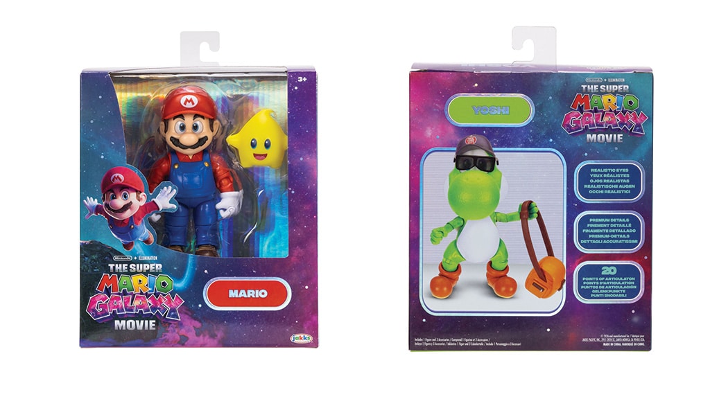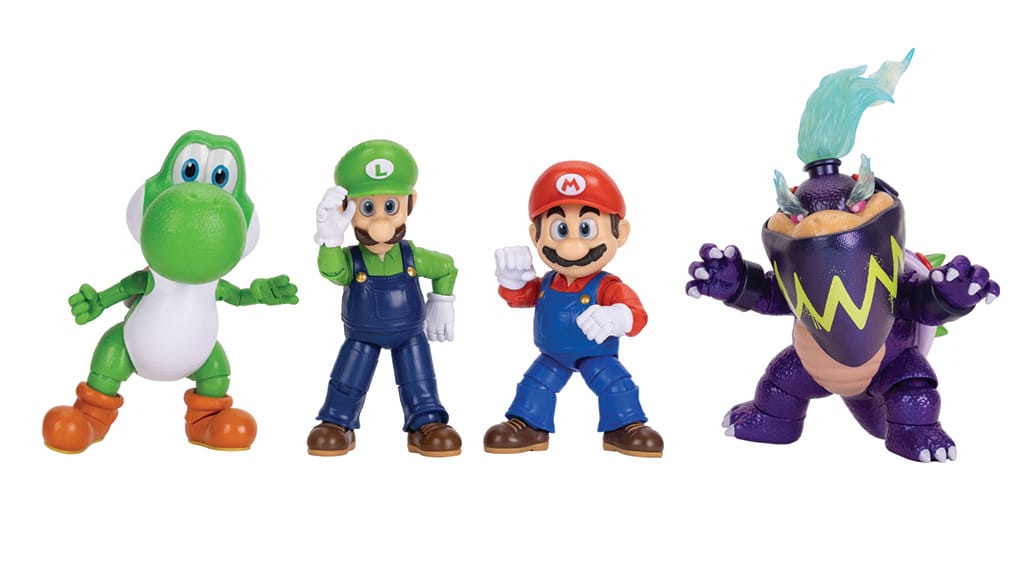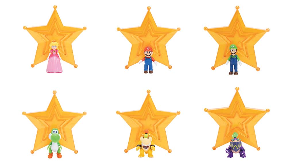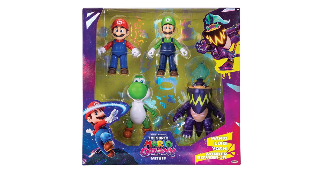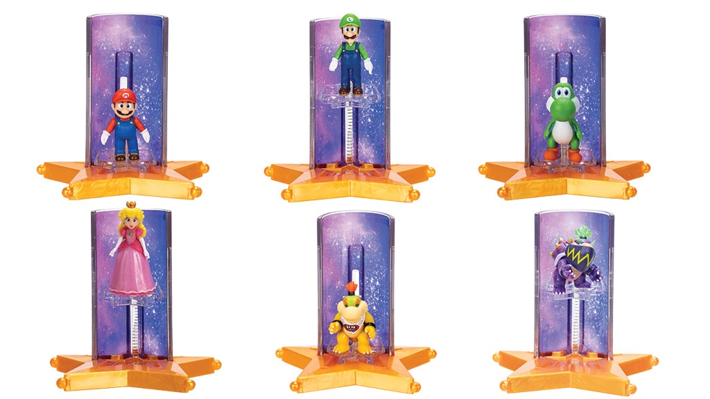 Colecția include diferite figurine de acțiune de 12,5 cm, printre care Mario, Luma, Yoshi, Rosalina și Bowser Jr.. De asemenea, doar în magazinele Target vor fi disponibile figurinele exclusive Luigi și Wonder Bowser Jr.. Copiii își pot colecționa personajele preferate și sub formă de minifigurine de 3,8 cm, precum și figurine pluș extra-mari, mașinuțe de curse cu mecanism de tragere înapoi și yo-yo-uri care luminează în întuneric. Colecția oferă o oportunitate interesantă pentru toți fanii de a-și achiziționa personajele preferate în diferite forme, fie că este vorba de figurine de jucărie, plușuri sau mașinuțe cool.