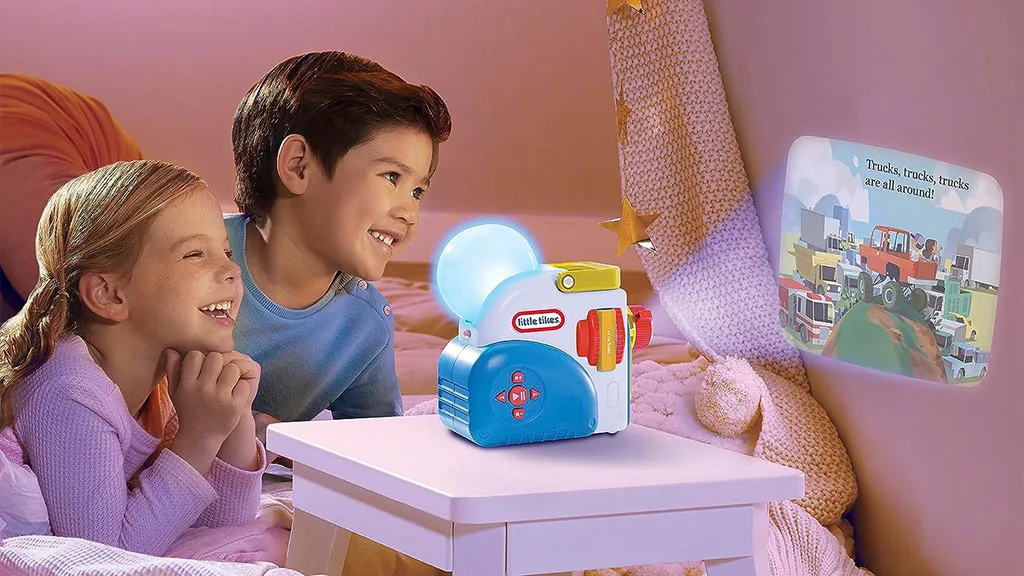 Masina de Povesti Story Dream nu doar proiectează povești clasice pe perete, ci și îmbogățește experiența cu efecte sonore și lumini colorate, pentru ca cititorul să se poată scufunda și mai adânc în poveste. De asemenea, funcționează ca o lumină de noapte și ca un aparat de zgomot alb. Printre colecțiile de povești se numără The Saggy Baggy Elephant, The Poky Little Puppy și multe altele.