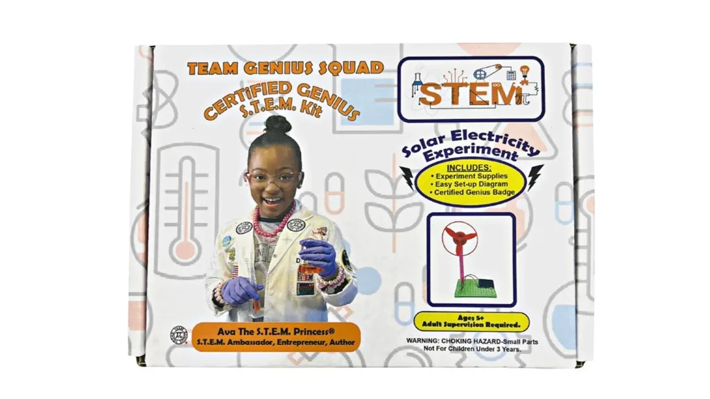 Fiecare set include unelte, instrucțiuni ilustrate pentru copii, precum și un certificat de Certified Genius. În Solar Electricity STEM Experiment Kit, copiii folosesc un ventilator de plastic, un motor și o carcasă de plastic, un suport de plastic, precum și o placă solară pentru a crea un ventilator care funcționează cu energia solară.