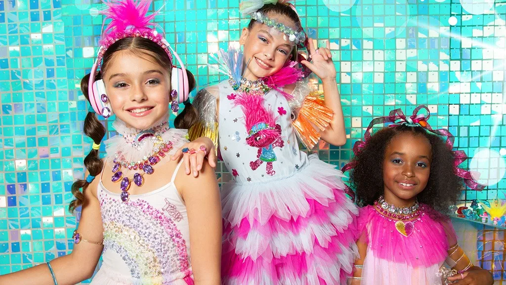 Pregătește-te să dansezi în haine ca și cum nimeni nu s-ar uita. Copiii pot urca pe scenă în cea mai recentă colecție de rochii de la Tutu Du Monde, care este inspirată de viitorul film DreamWorks, Trolls Band Together.