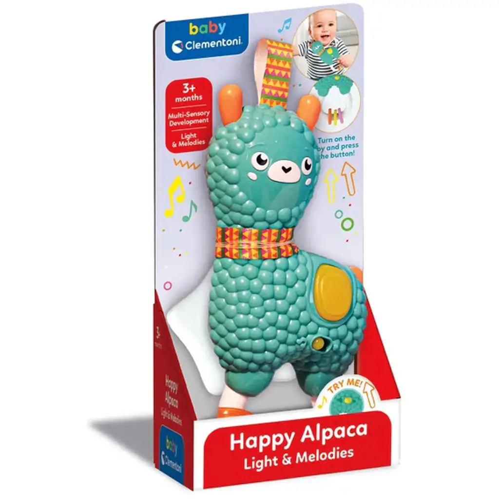 Jucărie veselă, colorată și educativă de la 3 luni – descoperă zornăitoarea interactivă Alpaca Fericită, care cu lumini, melodii și design texturat sprijină dezvoltarea senzorială a bebelușului tău! Această jucărie Clementoni Baby ia forma unei alpaca drăguțe, care nu doar că cucerește inimile celor mici cu aspectul său moale și pufos, dar aduce și bucuria descoperirii la fiecare apăsare de buton și mișcare.