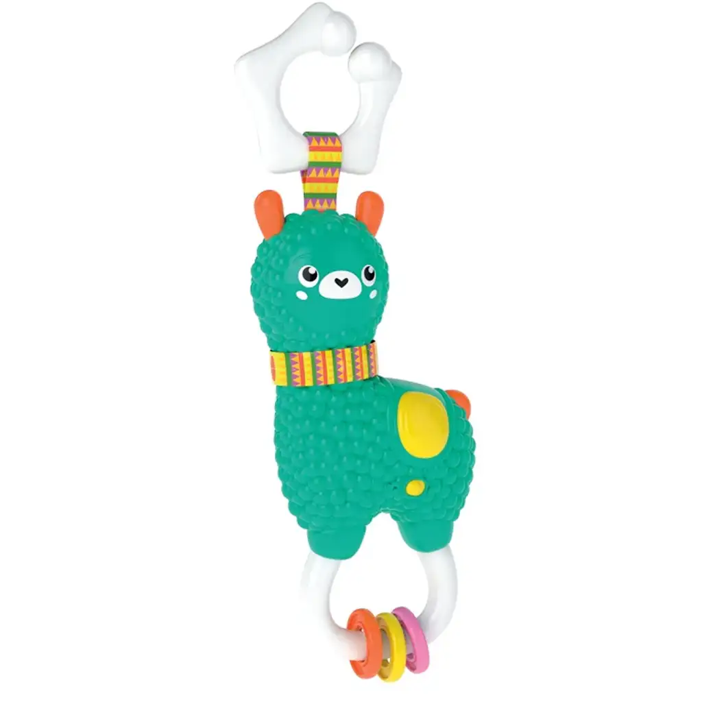 Cureaua colorată de sus permite fixarea ușoară a alpaca pe cărucior, pătuț sau chiar pe scaunul auto, astfel încât să fie mereu la îndemână în timpul călătoriilor. Un partener ideal pentru un mic explorator care iubește să se joace, să descopere și să învețe din fiecare mișcare a lumii.