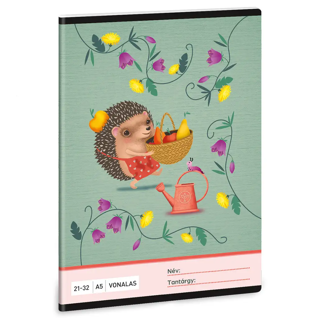 - Caiet cu linii pentru elevii din clasele primare, de la clasa a patra, cu grafică cu arici pe copertă