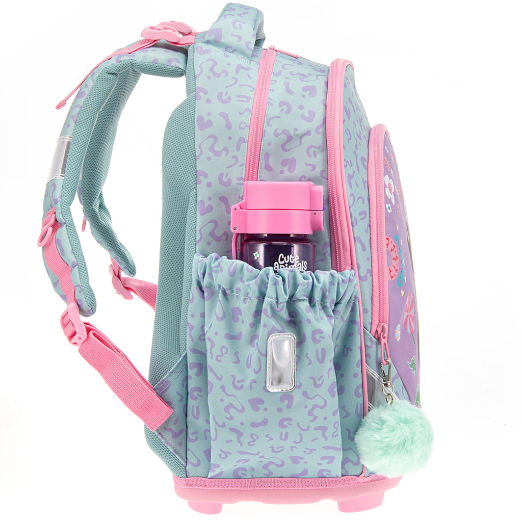 Datorită designului practic, sunt disponibile 3 compartimente spațioase cu fermoar, în care toate rechizitele încapeu ușor. În cel mai mare compartiment un separator textil facilitează organizarea, în timp ce în compartimentul mai mic există spațiu special pentru instrumentele de scris și legitimatie. Cele două buzunare laterale elastice sunt ideale pentru sticlă de apă sau obiecte mici.