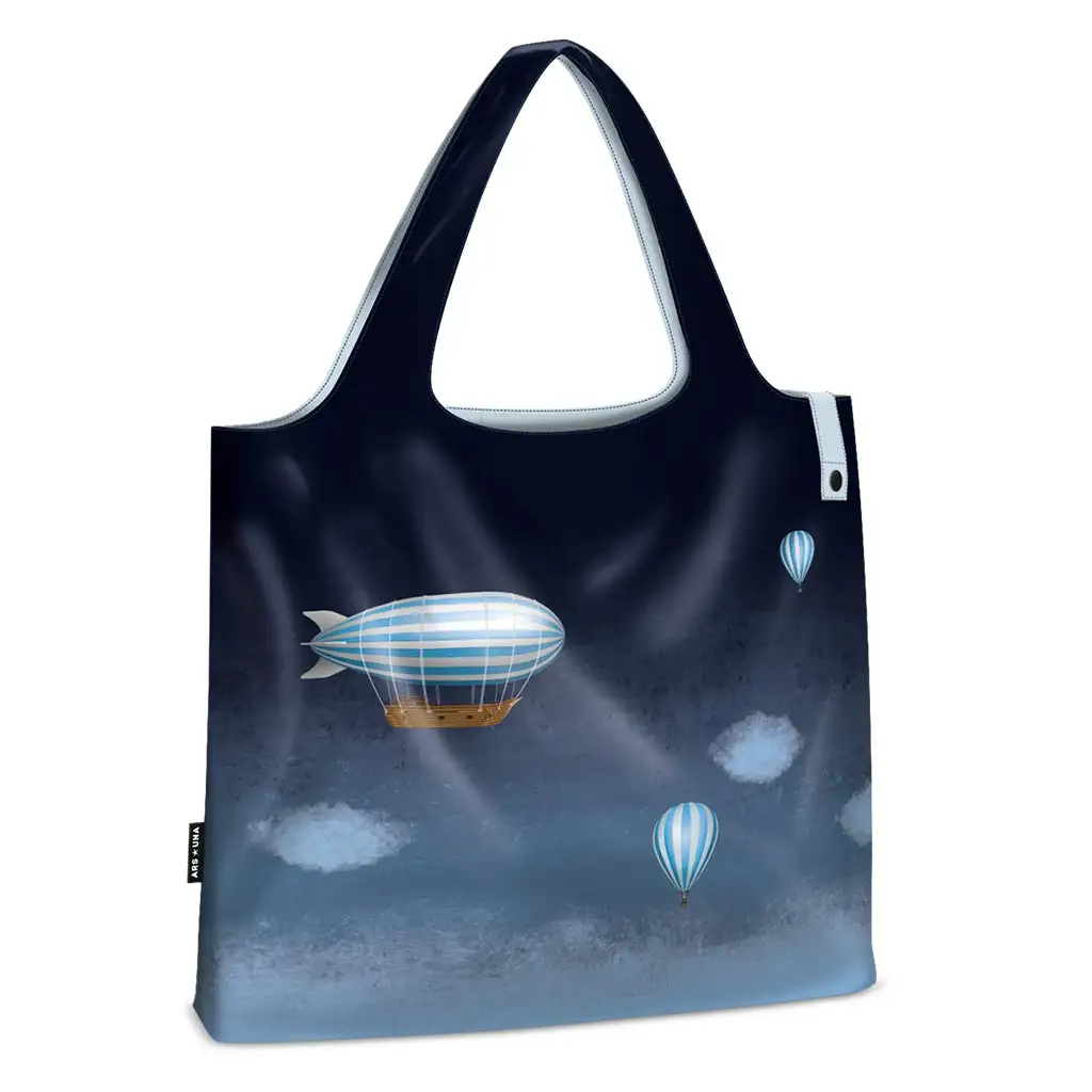 Pregătește-te pentru aventurile de zi cu zi cu această geantă de cumpărături Sky, care îți aduce vastitatea cerului și romantismul zborului cu balonul. Pe această geantă spațioasă, de 22 de litri, baloanele de aer plutesc printre nori sub un cer închis la culoare, fiind nu doar practică, dar și un accesoriu inspirațional pentru rutina zilnică.