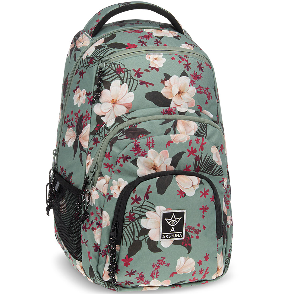 Ars Una: Ghiozdan școlar verde cu flori AU-2 32x46x22cmArs Una: Ghiozdan școlar verde cu flori AU-2 32x46x22cm