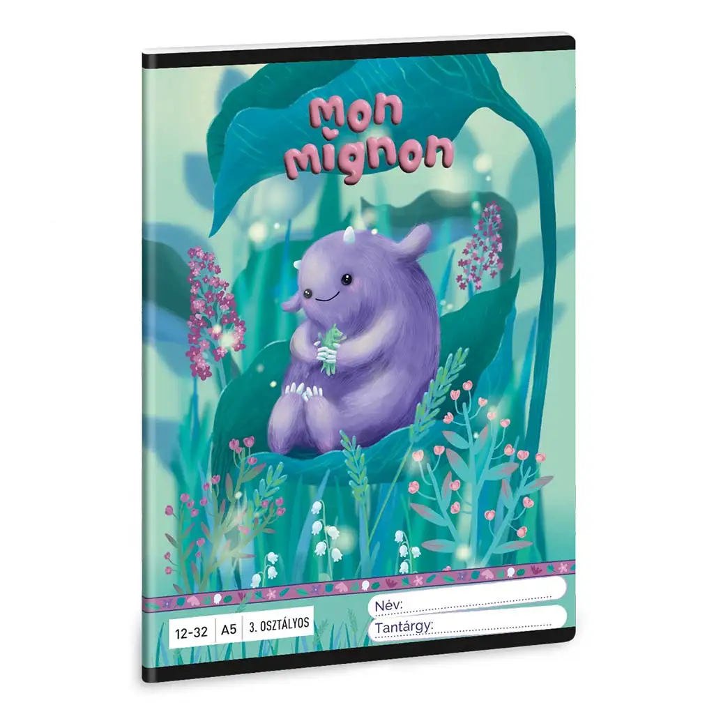 Caietul Mon Mignon - Ființă de Basm A/5 cu linii, pentru clasa a 3-a, este o alegere cu adevărat magică, prin care copilul tău poate aduce în fiecare zi o lume de fantezie printre sarcinile școlare. Pe copertă zâmbește o creatură de basm drăguță, de culoare mov, pe care o poți descoperi ascunsă într-o pădure luxuriantă, plină de flori. Ilustrația colorată și fermecătoare emană o atmosferă veselă și liniștită, astfel încât acest caiet nu este doar practic, ci și o sursă de bucurie pentru zilele obișnuite de la școală.