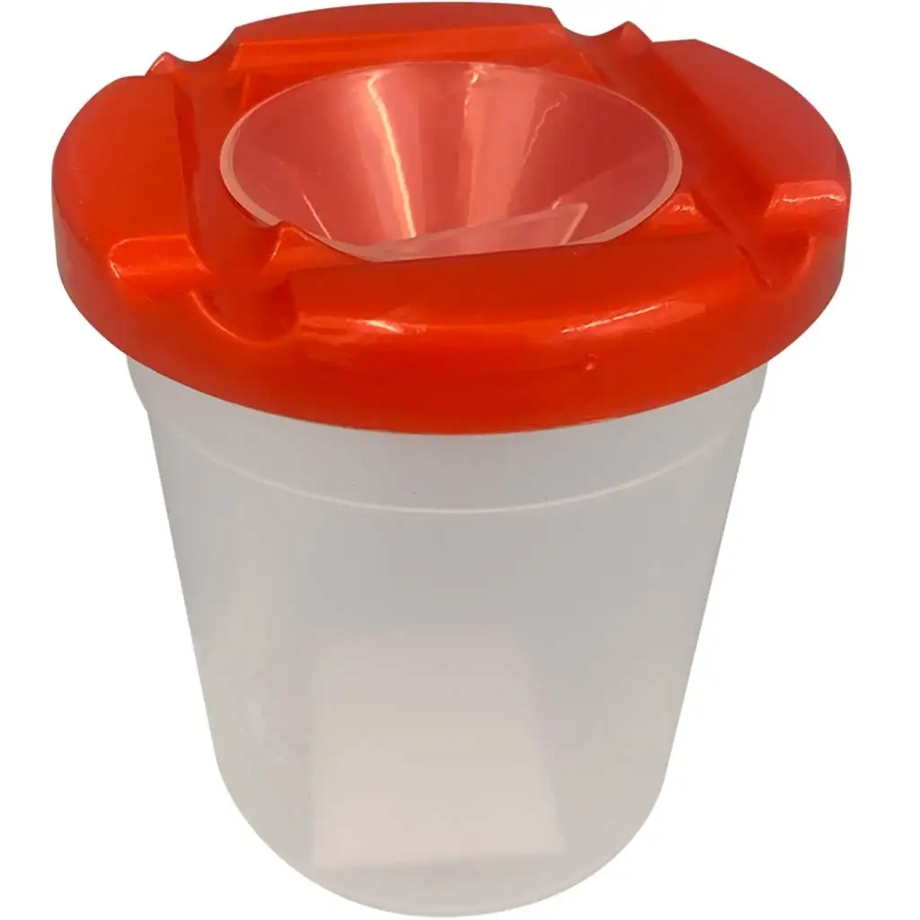 Paharul pentru spălat pensule de la Ars Una, cu capac roșu, este alegerea ideală pentru orice mic artist care dorește să-și mențină uneltele în ordine în timpul picturii. Acest pahar din plastic pentru spălat pensule oferă o soluție simplă și practică pentru curățarea pensulelor în timpul creației. Prin deschiderea de pe capacul roșu, poți introduce cu ușurință pensulele în pahar, astfel încât să le poți curăța confortabil și eficient cu solventul tehnicii de pictură utilizate. În canelurile de pe capac poți depozita pensulele orizontal, ceea ce este deosebit de util atunci când faci o pauză de la pictură. Acest pahar pentru spălat pensule este ușor, de dimensiuni mici și fabricat din plastic durabil, fiind astfel ușor de depozitat și transportat, mereu gata pentru următoarea provocare creativă.
