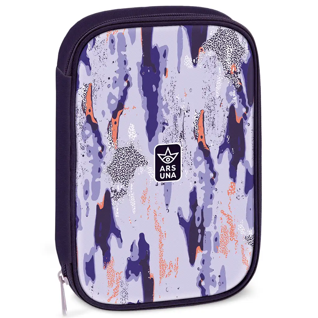 Penarul multietajat Ars Una Camouflage este o alegere cu adevărat cool și practică pentru orice elev care iubește stilul modern, dar totodată simplu. Designul modern, în nuanțe de mov-negru-gri, cu imprimeu camuflaj, oferă un aspect dinamic și se potrivește perfect și cu alte accesorii școlare. Carcasa exterioară este tare, oferind astfel o protecție excelentă pentru instrumentele de scris depozitate în interior, iar închiderea cu fermoar este sigură și ușor de folosit.