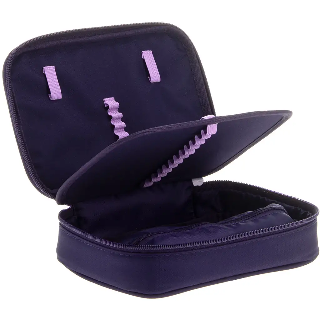 Compartimentarea interioară este un adevărat exemplu de organizare: suporturi elastice pentru cele mai des folosite instrumente – stilouri, creioane, riglă – și un buzunar practic cu fermoar pentru lucruri mici, precum radiera, ascuțitoarea sau bucățele de hârtie. Sub capac se găsește un al doilea strat, ce oferă spațiu de depozitare suplimentar, pentru ca tot ce ai nevoie la școală să încapa într-un singur loc.