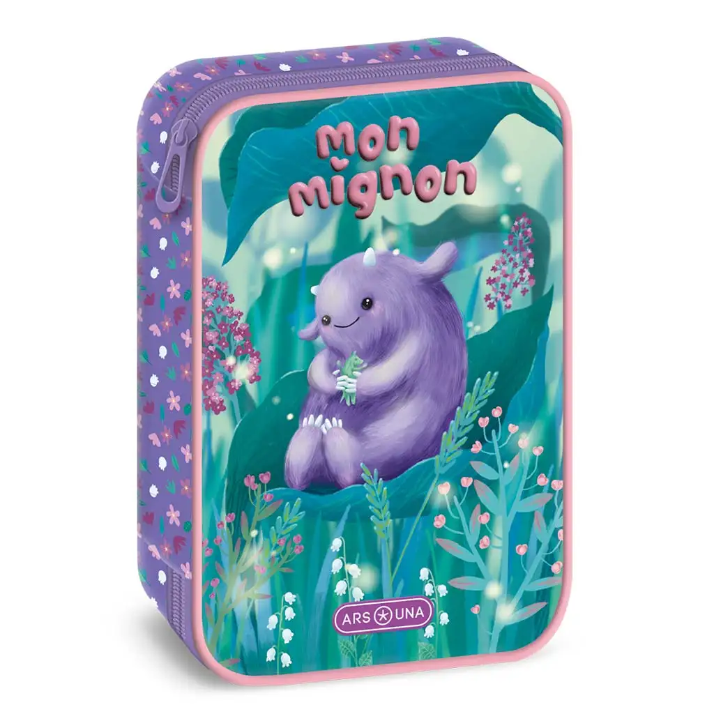 Penarul Mon Mignon cu mai multe compartimente nu este doar drăguț, ci și super practic, fiind astfel o alegere perfectă pentru școlarii mici! Designul său special, cu o figurină pufoasă mov, îi va fermeca imediat pe copii, iar fundalul floral, inspirat din povești, îl face și mai atractiv. Creatura prietenoasă și zâmbitoare va aduce cu siguranță un zâmbet pe fața copilului tău în fiecare zi.