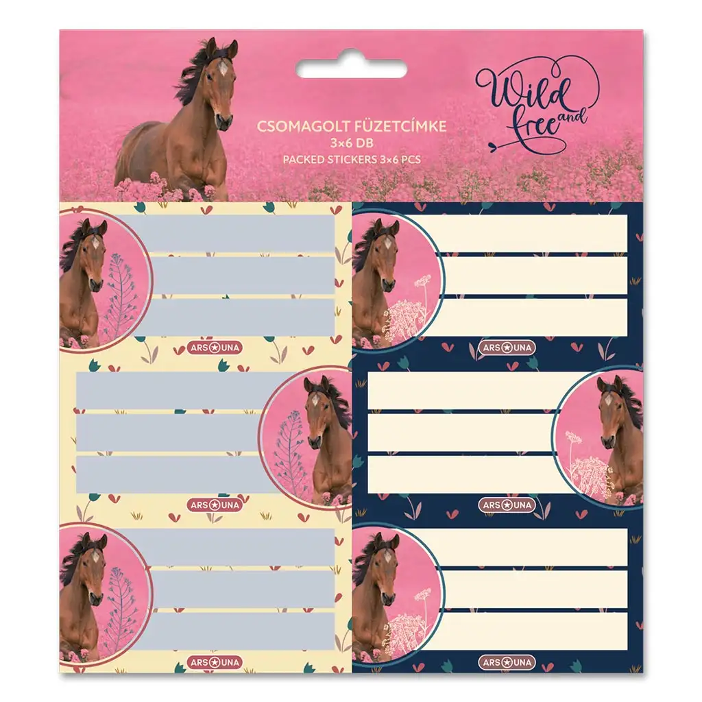 Ars Una: Sălbatic și Liber Set de etichete pentru caiete cu model de cal, ambalat, 3x6 bucți.Ars Una: Sălbatic și Liber Set de etichete pentru caiete cu model de cal, ambalat, 3x6 bucți.