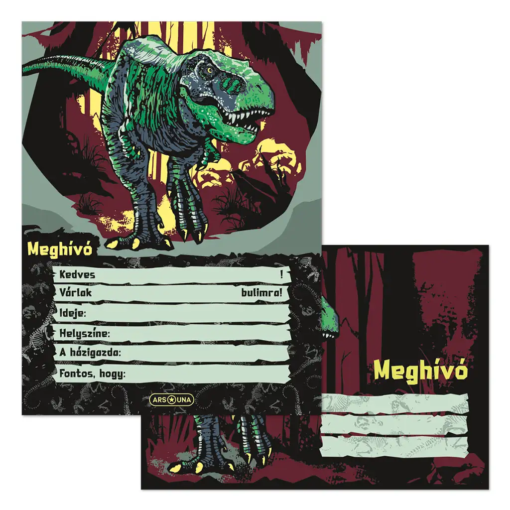 Ars Una: Set de invitații T-rex, 10 bucăți cu plicuri