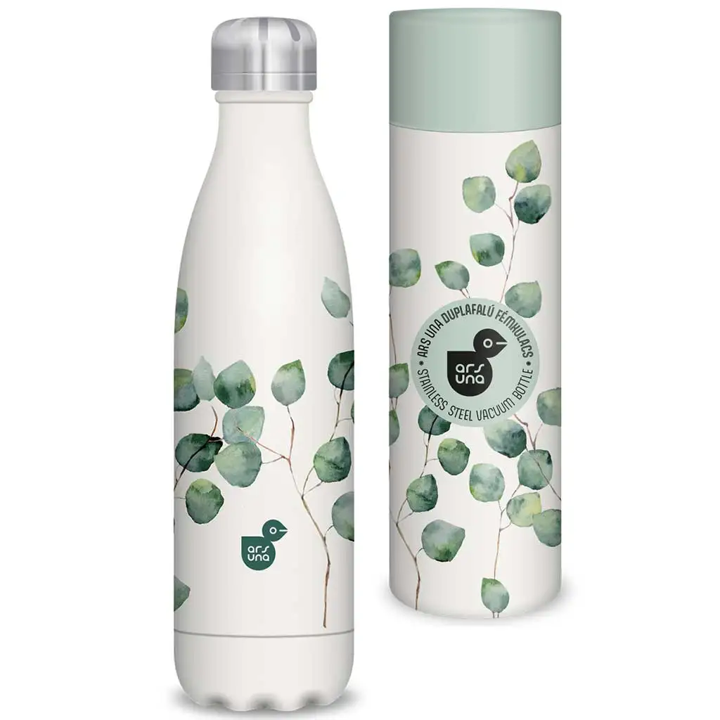 Sticla metalică cu pereți dubli Ars Una Botanic Leaf este un produs deosebit de frumos și inspirat de natură, cu un decor armonios de frunze verzi care sugerează prospețime autentică. Această sticlă de 500 ml, cu design botanic elegant, nu este doar frumoasă, ci și o alegere practică și ecologică. Culorile pastelate de verde și alb, inspirate de natură, sunt liniștitoare, fiind astfel un accesoriu perfect pentru o zi stresantă la birou sau pentru o excursie liniștită în natură. Datorită cutiei de cadou stilate, este ideală și ca un cadou.