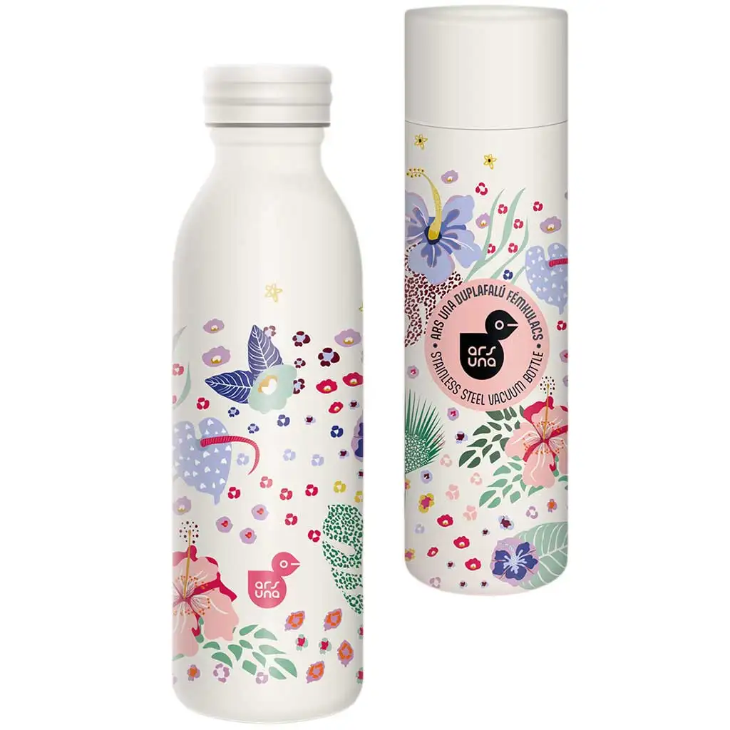 Sticla metalică cu pereți dubli Ars Una Cream Hibiscus nu este doar practică, ci atrage atenția și prin designul său impresionant. Pe fundalul de culoare crem deschis apar diverse flori și frunze exotice colorate, care emană o atmosferă naturală și proaspătă. Această sticlă de 600 ml poate fi o alegere perfectă pentru utilizarea zilnică, fie că o iei cu tine la școală, la locul de muncă sau în călătorii. Datorită cutiei cadou elegante, poate fi și un cadou cu adevărat special.