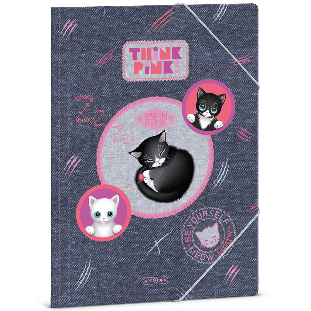 Ars Una: Think Pink dosar cu elastic drăguț cu pisici, mărime A4Ars Una: Think Pink dosar cu elastic drăguț cu pisici, mărime A4
