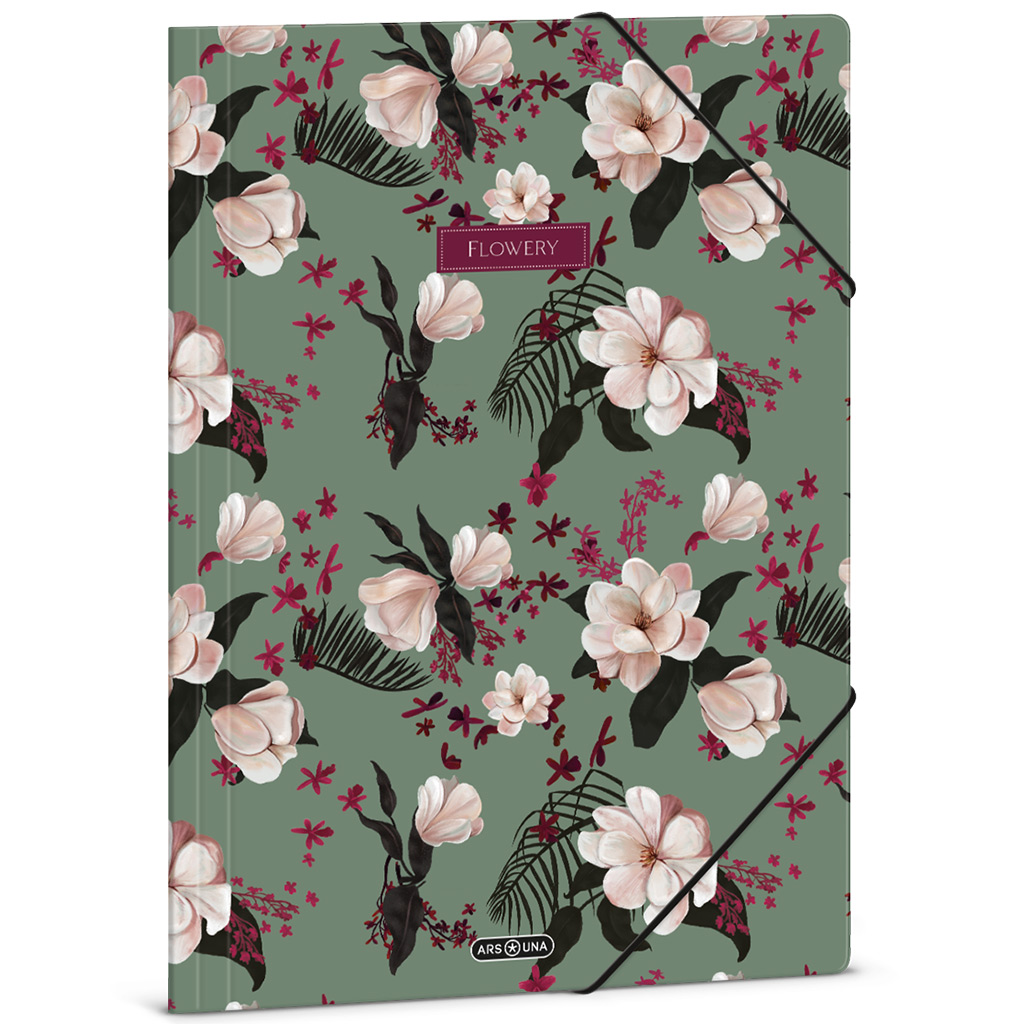 Ars Una: dosar cu elastic, verde cu flori, format A4Ars Una: dosar cu elastic, verde cu flori, format A4