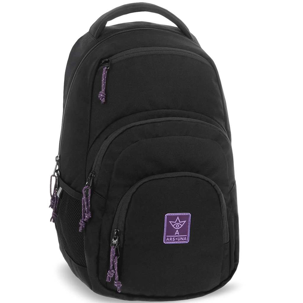 Evaluare Ars Una: ghiozdan/rucsac școlar pentru fete, negru-violet, Cordura, AU-2 32x46x22 cm