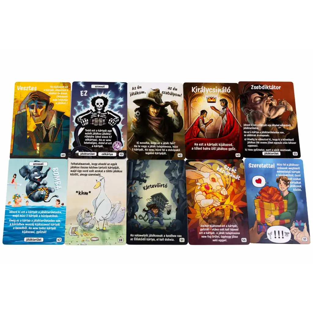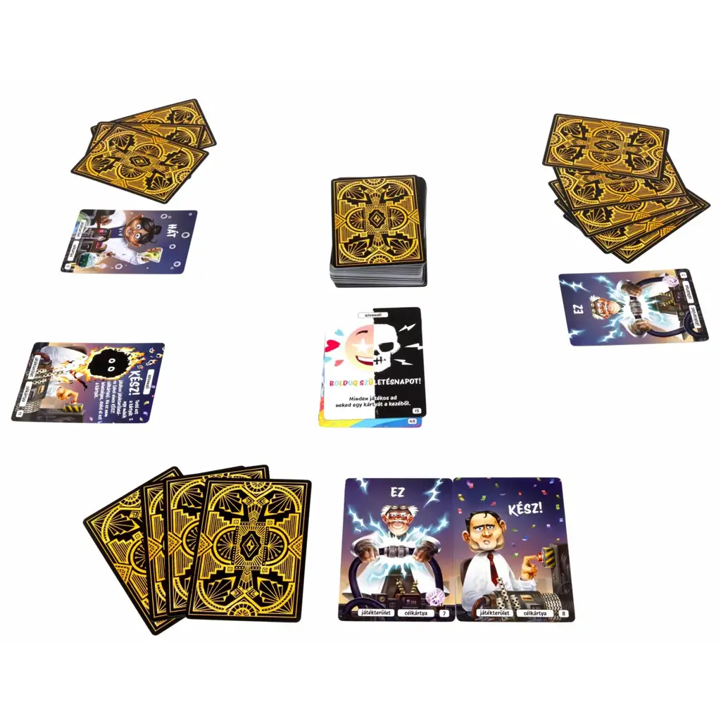 Dacă ți-ai dorit vreodată un joc în care nimic nu este ceea ce pare și în care regulile nu doar că sunt încălcate, ci și rescrise la fiecare minut, atunci „Hát ez kész!” este pentru tine (și simțul tău al umorului)! Acest joc de cărți alert și complet nebunesc seamănă cu un reality show absurd combinat cu o pagină de meme – acolo unde scopul e simplu, dar drumul până acolo este complet imprevizibil.