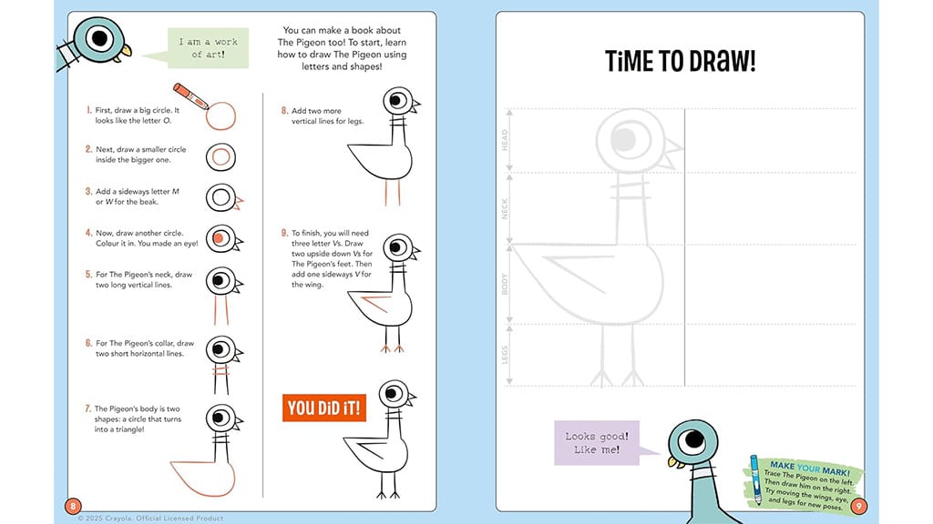 Cartea oferă copiilor mai mult de 100 de activități interesante, printre care pot învăța să deseneze, să navigheze printr-un labirint de veverițe, să rezolve puzzle-uri și să coloreze pagini în stil benzi desenate. Fiecare pagină îi încurajează pe copii să se exprime în moduri noi, de exemplu prin scris, gătit, dans sau crearea propriei arte. Cartea conține 50 de autocolante și un poster detașabil pe care copiii îl pot colora și agăța în camera lor. Setul include și carioci Crayola cu două capete, ale căror culori se potrivesc cu paleta de culori folosită de Willems pentru personajele sale. Această carte nu este doar distractivă, ci dezvoltă și creativitatea, exprimarea de sine și abilitățile de rezolvare a problemelor, menținând copiii ocupați ore întregi.