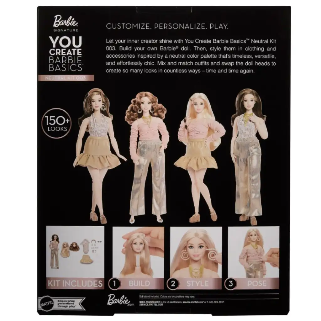 Păpușa Barbie: You Create este un set de joacă special, bazat pe creativitate, în care copiii (și colecționarii) pot crea și recrea propriul look Barbie de nenumărate ori. Acest set cu aspect premium face parte din colecția Barbie Signature și pune accentul pe posibilitatea personalizării. Setul include mai multe elemente interschimbabile, astfel încât coafura, hainele și stilul păpușii pot fi variate, permițând crearea a peste 150 de look-uri diferite. Hainele și accesoriile în culori neutre și elegante oferă un efect mereu la modă, încurajând în același timp exprimarea de sine și experimentarea cu moda. Datorită articulațiilor mobile, păpușa poate fi pozată cu ușurință, ceea ce face joaca și expunerea și mai plăcute. Este alegerea ideală pentru cei care iubesc stilul unic, creația și latura creativă a universului Barbie.