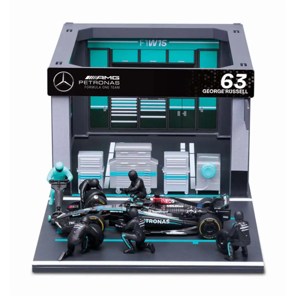 Bburago: Mașină de curse F1 1/43 - MB AMG W15 E Performance box pitBburago: Mașină de curse F1 1/43 - MB AMG W15 E Performance box pit