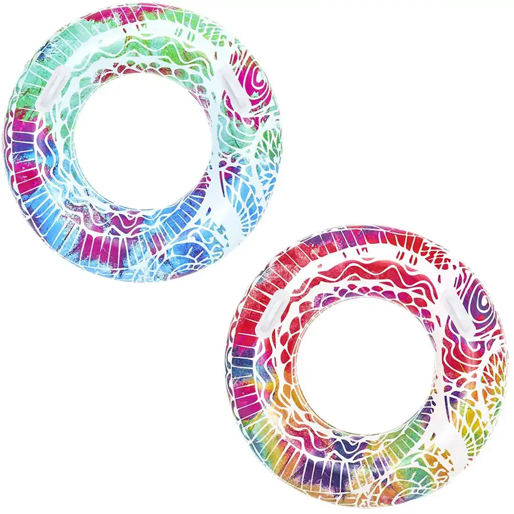 Ia cu tine atmosfera tropicală oriunde te duci – fie că este piscină, plajă sau malul apei – cu colacul de înot Bestway cu model tropical abstract, cu diametrul de 91 cm! Acest colac de înot gonflabil, disponibil în două variante de culoare spectaculoase (albastru-verde rece și roșu-violet cald), este alegerea ideală pentru oricine dorește să se bucure de timpul petrecut în apă cu stil.