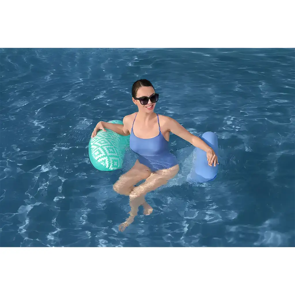 Această saltea de apă, care poate fi folosită și ca șezlong, are o structură inovatoare care îți permite să te bucuri de confort personalizat, în orice mod preferi. Poate fi folosită ca șezlong plat, scaun de piscină, hamac sau ca șa. Cu o secțiune ultra-înfoiată pentru cap și un suport pentru picioare, poți petrece ziua în stil și confort!