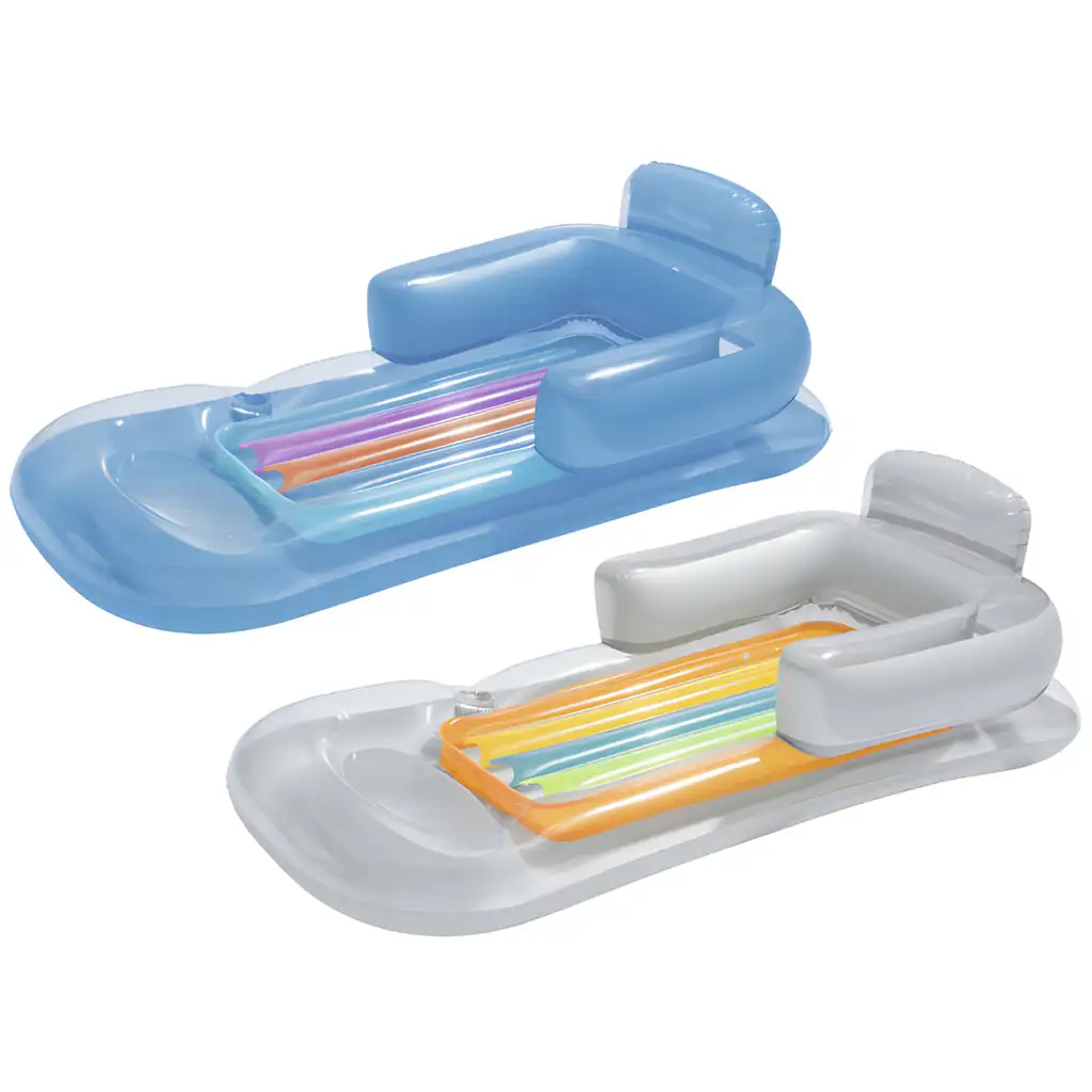 Relaxează-te și bucură-te de suprafața apei cu această saltea confortabilă, care are și spătar și cotiere. Salteaua gonflabilă cu spătar este făcută din plastic transparent, decorată cu culori vii, care îi conferă un aspect stilat.