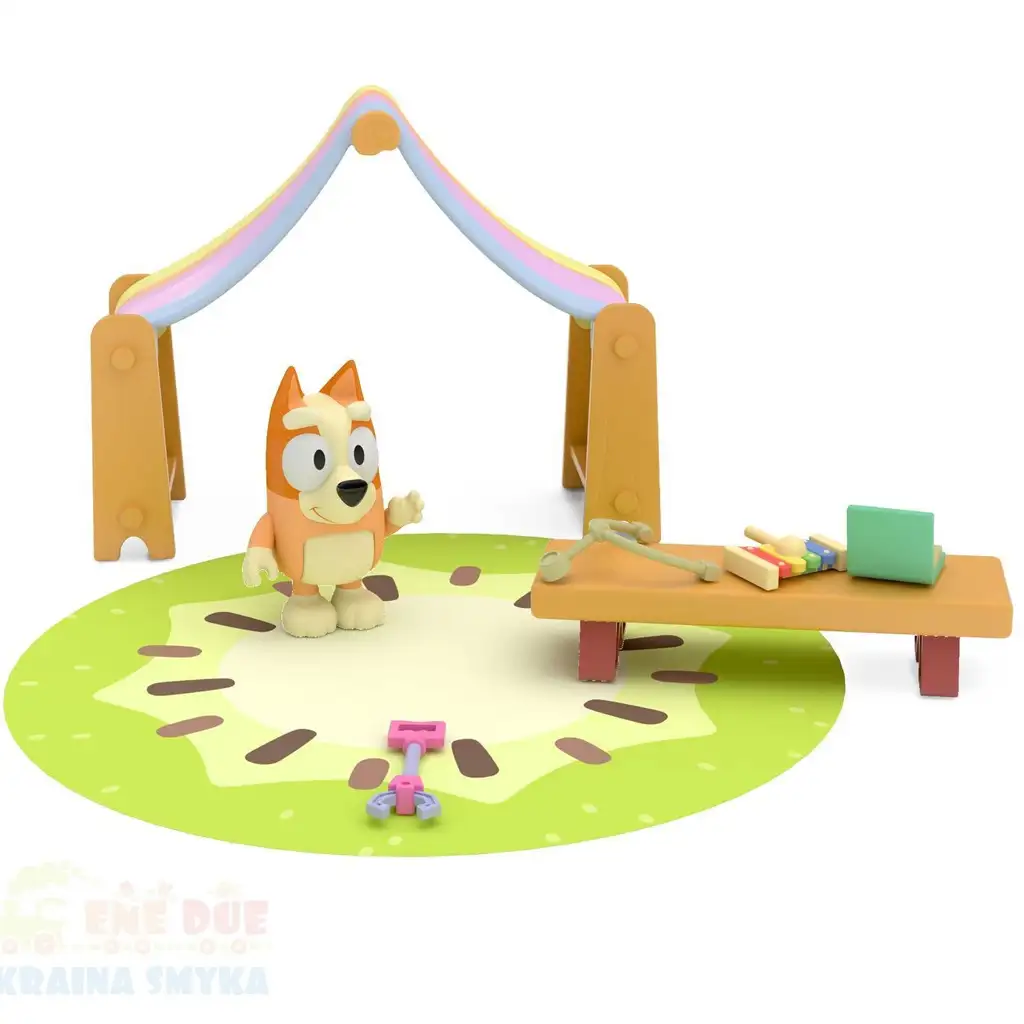 Setul de figurine Bluey: Camera de Joacă Mini a lui Bingo oferă un set emoționant și detaliat care se concentrează în jurul micuței figurine Bingo. Setul include o masă de joacă, jucării muzicale, o carte și un suport de perdea cu baldachin, care poate funcționa și ca un cort.