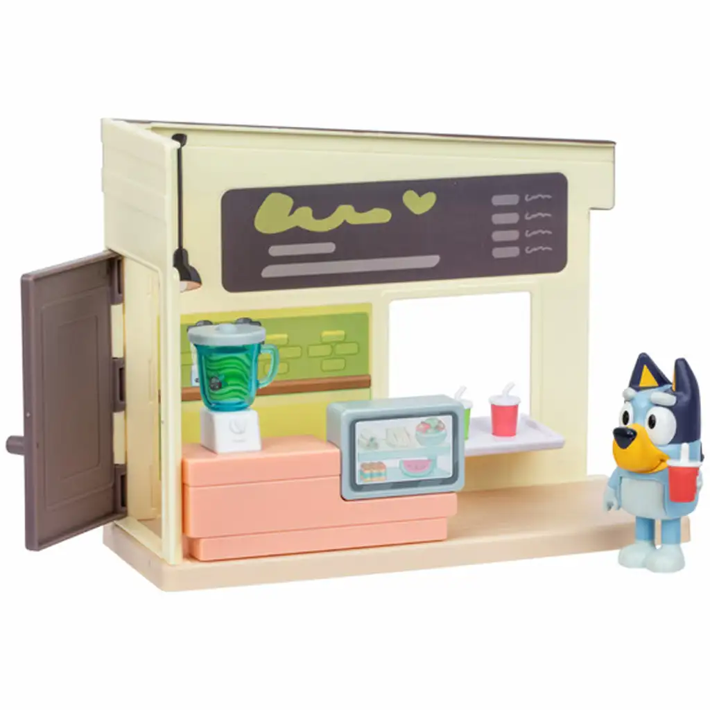 Setul include o figurină Bluey care ține în mână o băutură cu pahar roșu și este complet pregătită să servească. Peretele magazinului este decorat, iar ușa este funcțională, ceea ce face jocul și mai realist. Acest set de joacă este excelent pentru dezvoltarea imaginației, a motricității fine și a abilităților de comunicare, în timp ce copiii se bucură de învățatul prin joacă.