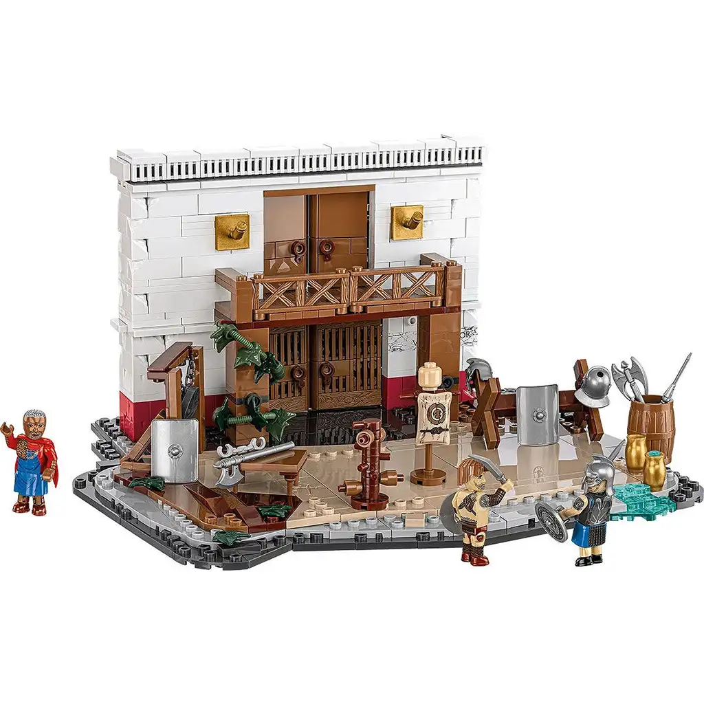 Trăiește cele mai palpitante momente ale Romei antice cu acest set de construcție bogat detaliat, format din 583 piese, care reprezintă o școală de gladiatori! Lanista, adică conducătorul școlii de gladiatori, este deja pregătit să antreneze sclavi pentru lupte sângeroase, spre divertismentul poporului. Cu acest set poți construi nu doar o clădire de școală și o dioramă a terenului de antrenament, ci găsești și trei figurine – inclusiv doi gladiatori și lanista.