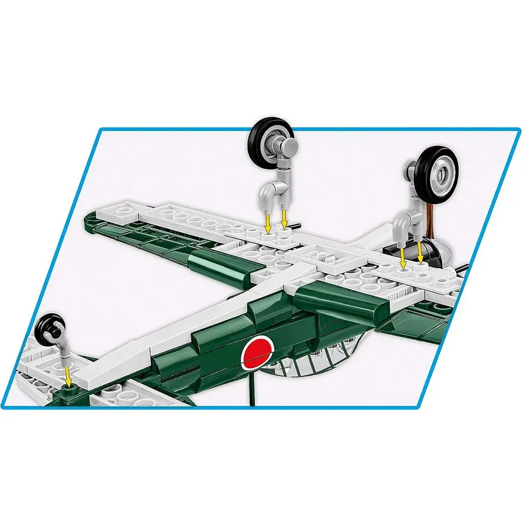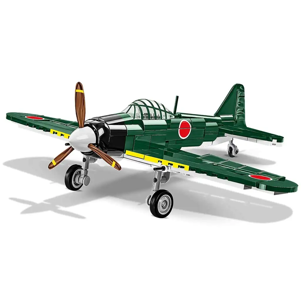 Setul de construcție COBI Mitsubishi A6M2 „Zero” aduce un omagiu uneia dintre cele mai cunoscute și temute aeronave japoneze din cel de-al Doilea Război Mondial. „Zero”, denumirea oficială Mitsubishi A6M2, a apărut în 1940 și a devenit rapid legendar pe teatrul de război al Pacificului. Avionul, care a servit în flota Marinei Imperiale Japoneze, a fost un adversar de temut pentru piloții americani și aliați, mai ales în primii ani ai războiului. Manevrabilitatea sa excepțională, raza lungă de acțiune și performanțele de încredere l-au făcut cu adevărat special și a participat la bătălii decisive precum atacul de la Pearl Harbor sau bătălia de la Midway.
