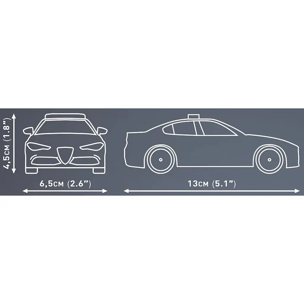 Setul de construcție COBI Alfa Romeo Giulia Quadrifoglio mașină de poliție este o versiune specială a limuzinei sport iconice, care se remarcă și în flota poliției italiene. Modelul reproduce fidel stilul „Quadrifoglio” al Alfa Romeo – combinând simbolistica trifoiului cu patru foi cu elemente de design specifice mașinilor de poliție, conferind astfel un caracter unic, păstrând forma fidelă originalului.