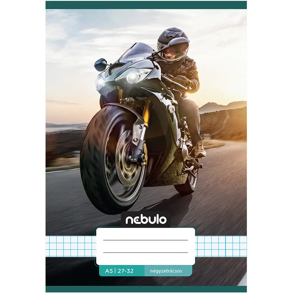 Caiet cu pătrățele A/5, 27-32, cu model de motor de curse imprimat.Caiet cu pătrățele A/5, 27-32, cu model de motor de curse imprimat.