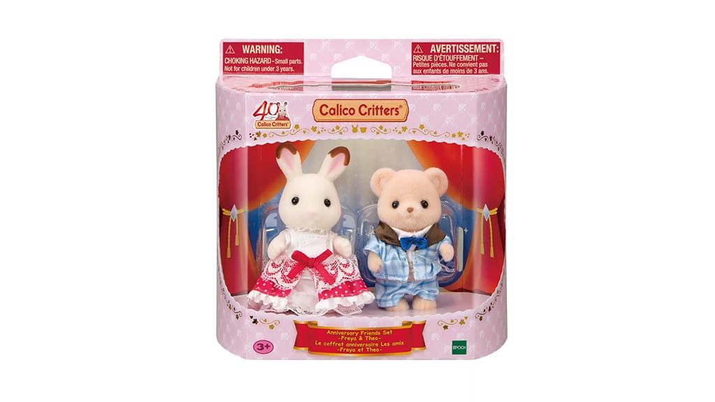 Setul de prietenie aniversar – Freya & Theo demonstrează perfect că sărbătorirea este întotdeauna mai bună cu prietenii. Acest set special nu doar face momentele petrecute împreună de neuitat, ci întărește și prietenia și experiențele comune. Surprinde-ți persoanele dragi cu acest set și faceți timpul petrecut împreună și mai special! | Sursa: Epoch CompanySărbătorește cea de-a 40-a aniversare a Calico Critters cu petrecerea de ziua de naștere a Freyei! Descoperă ținuta specială cu Rochia cu Tort de Căpșuni și Setul Prietenii Aniversării, în care îi vei găsi pe Freya și Theo. Această ediție specială este alegerea perfectă pentru orice colecționar și fan, pentru a face această ocazie de neuitat. Sărbătorește alături de noi și fă lumea Calico Critters și mai magică!