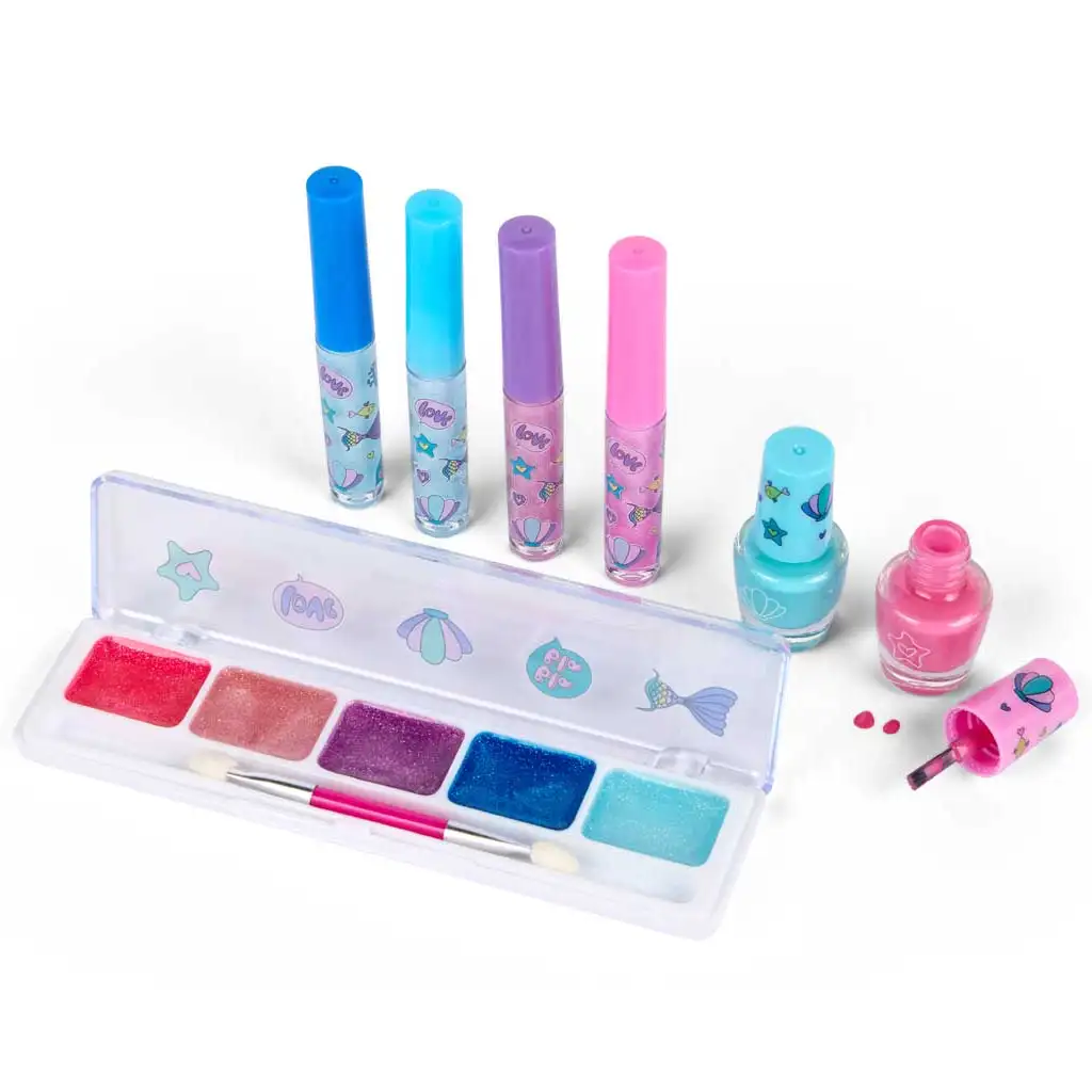 Setul a fost conceput pentru ca fetițele să îl poată folosi cu ușurință singure. Paleta de fard vine cu un aplicator dublu care facilitează aplicarea, iar dimensiunea practică a lacului de unghii și a luciului de buze este ideală pentru mânuțele mici. Cutia și fiecare produs individual sunt decorate cu grafice colorate și drăgălașe (inimioare, scoici, stele, bule de text), oferind o experiență și mai magică.
