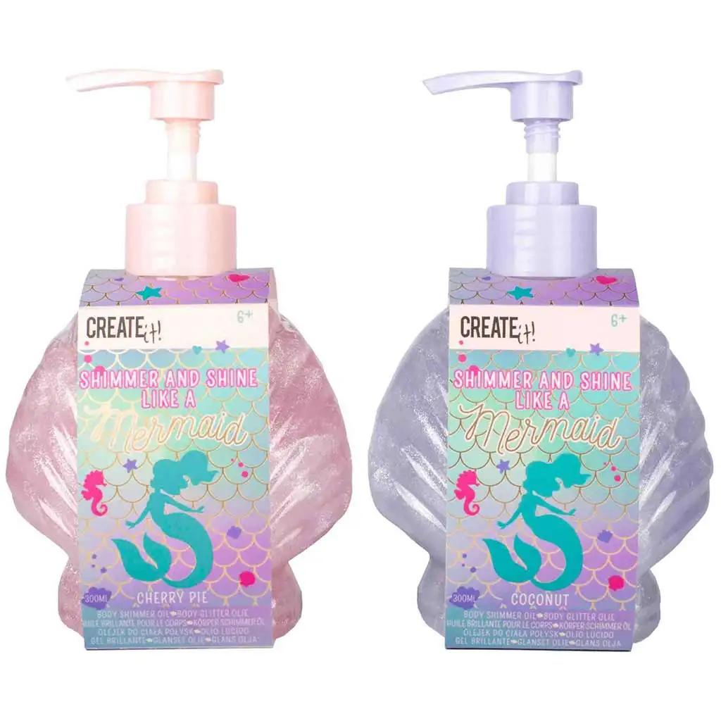 Adăugați strălucire de sirenă în fiecare zi cu cele două variante ale "Create It! Gel strălucitor de corp pentru sirenă" de la Canenco! Acest gel special pentru corp vine într-un flacon strălucitor, în formă de coadă de sirenă, echipat cu pompă, pentru a facilita aplicarea ușoară a strălucirii minunate pe pielea ta. Atât varianta roz cu aroma de prăjitură cu cireșe, cât și cea lila cu aroma de cocos, au efect de hidratare a pielii și o fac să strălucească, oferind în același timp un adevărat strălucire de sirenă. Ambele variante sunt disponibile în ambalaje de 300 ml și sunt recomandate de la vârsta de 6 ani. Fii specială în fiecare zi, lasă-ți pielea să strălucească ca o stea!