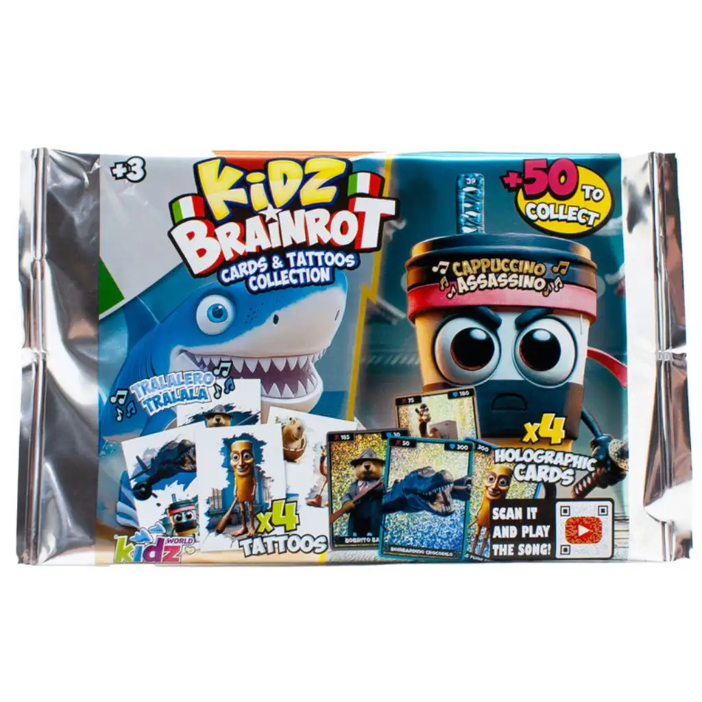 Pachetul de carduri și tatuaje holografice Brainrot este o adevărată surpriză pentru colecționari și fani. În pachet se pot colecta peste 50 de carduri diferite și interesante, inclusiv carduri holografice care strălucesc cu un efect special de lumină. Pe lângă carduri, pachetul conține și tatuaje haioase și cool, cu ajutorul cărora copiii își pot exprima și mai mult creativitatea și pasiunea. Fiecare piesă din pachet oferă o experiență unică, deoarece între carduri se regăsesc personaje preferate, precum și variante decorate cu efecte speciale. Cardurile nu numai că pot fi colecționate, ci pot prinde și viață în mod interactiv: anumite carduri pot fi scanate pentru a reda muzică și cântece, făcând astfel experiența de joc și mai distractivă. Produsul este o alegere ideală pentru copiii de peste 3 ani care adoră să colecționeze, să se joace și să descopere mereu noi surprize.