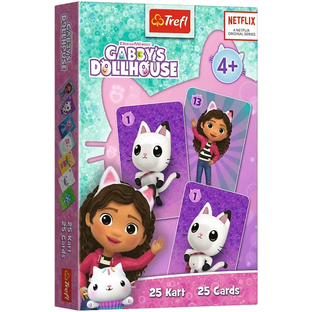 Faceți cunoștință cu Gabi și adorabila ei pisică, Pandy, prin jocul de cărți "Casa de păpuși a lui Gabby Black Peter" creat de Trefl. Personajele populare ale seriei Netflix revin acum într-un joc de cărți captivant, unde copiii împreună cu ei caută perechea potrivită printre cărțile colorate, încercând în același timp să scape de cartea "Black Peter". Acest joc este o metodă excelentă pentru dezvoltarea memoriei și a gândirii strategice, în timp ce copiii petrec timp cu personajele lor preferate. Jocul este recomandat de la vârsta de 4 ani și grafica minunată, împreună cu personajele drăguțe, garantează că fiecare mic jucător va fi încântat să ia cărțile în mână.